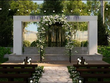 Our venue offers breathtaking mountain range views, a serene pond with a charming fountain, and a beautiful stream that runs along the property. Here are some highlights of what we can offer for your special day: