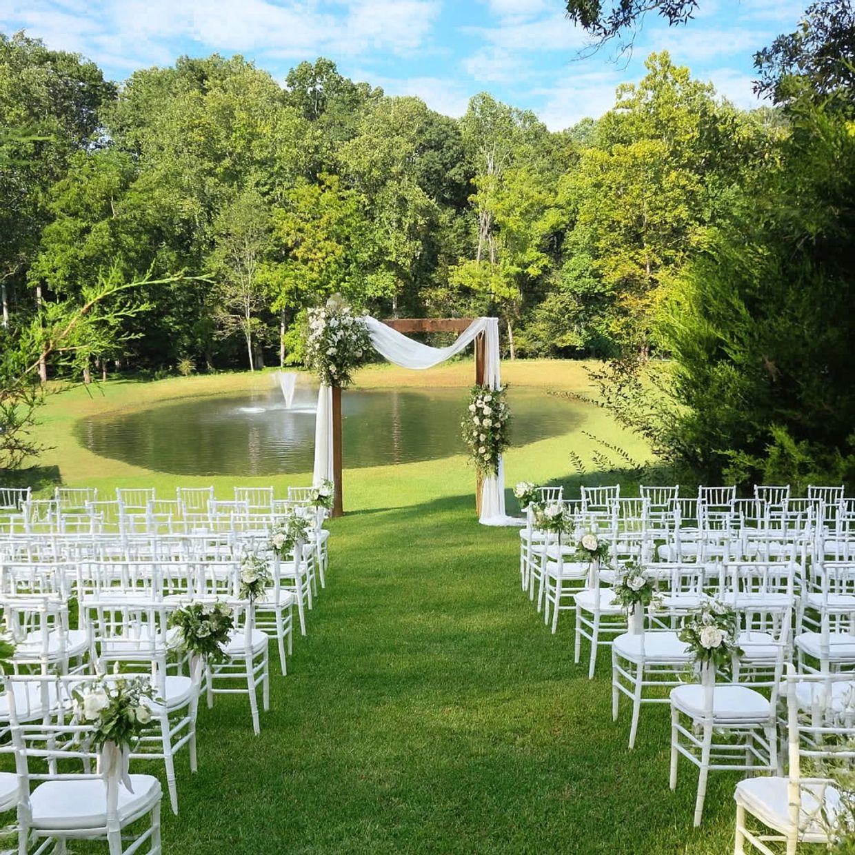 Our venue offers breathtaking mountain range views, a serene pond with a charming fountain, and a beautiful stream that runs along the property. Here are some highlights of what we can offer for your special day: